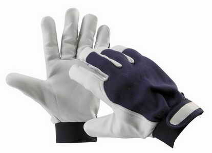 PELICAN BLUE - rukavice šité z jemné lícové kozinky v dlani, modré bavlněné tkaniny na hřbetu a s manžetou na suchý zip velikost 11 číst celé