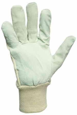 HOBBY - rukavice z lícové ovčiny v dlani, bavlněné tkaniny na hřbetu, s překrytými špičkami prstů a nápletem na zápěstí velikost 10 číst celé