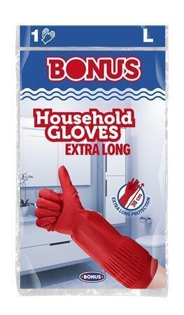 Gumové rukavice pro domácnost, červená, latexové, extra dlouhé, 38 cm, vel. L, BONUS B067