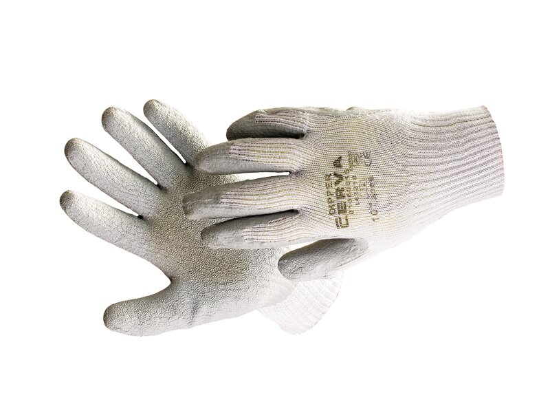 Pletené bezešvé nylonové rukavice. Polomáčené v latexu. číst celé