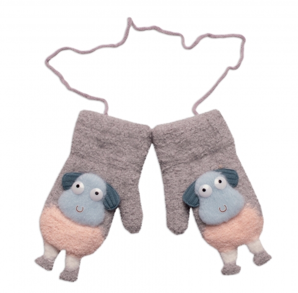 Dětské jednoprsté rukavice jsou základním produktem na podzim a v zimě. Rukavičky jsou zateplené zevnitř přídavnou vrstvou kožešiny. Jsou spojeny šňůrkou, kterou provléknete rukávky bundičky nebo overálku a zajistíte tím, že i když dítko rukavičky nějakým způsobem sundá, nespadnou na zem.