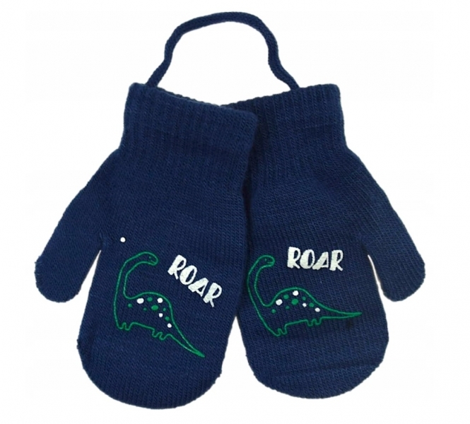 Zimní chlapecké rukavičky se šňůrkou Roar Dino - granátové, vel. 80/92; 80-92 (12-24m)
