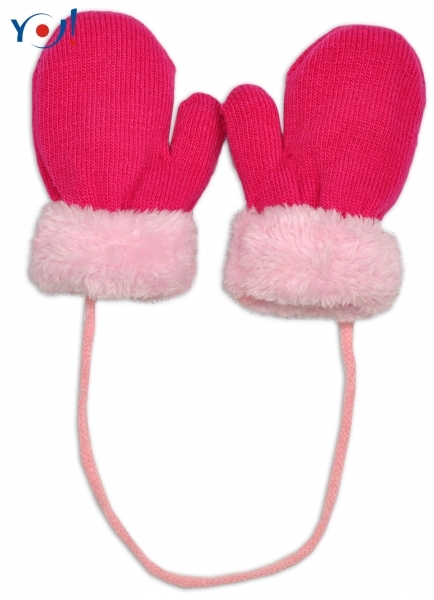 Zimní kojenecké rukavičky s kožíškem - se šňůrkou YO -malinové/růžový kožíšek, 110; 110 (4-5r)