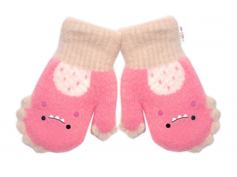 Zimní rukavičky s kožíškem Dino, Baby Nellys, růžové, 104/110; 104/110 (3-5r)