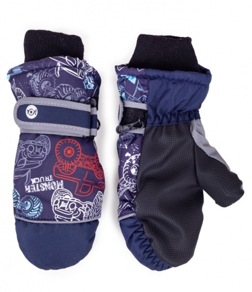 Dětské zimní, nepromokavé palčáky Monster Truck YO!, černá/granát, vel. 98/104, 12cm; 98-104 (2-4r)
