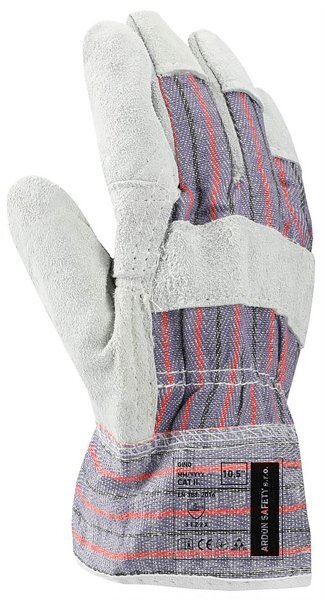 Dlaň z hovězí štípenky, hřbet a manžeta z bavlněné tkaniny, CE EN 388, velikost 10,5. číst celé