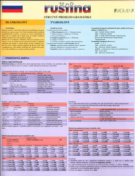 Přehled gramatiky ruského jazyka s mnoha příklady pokrývá hláskosloví, slovní druhy i syntaxi.