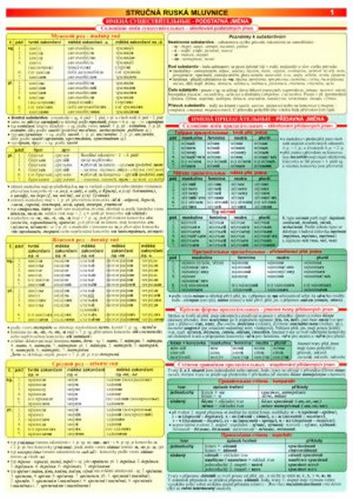 Na dvou kartách je soustředěný přehled nejdůležitějších pravidel ruské mluvnice členěný podle slovních druhů vč. přepisu azbuky. První karta se věnuje gramatice podstatných a přídavných jmen, zájmen a číslovek. Druhá karta popisuje mluvnici ruských sloves. Stručná ruská mluvnice byla původně určena studentům středních škol, ale nyní se vzrůstajícím zájmem o ruský jazyk je více využívána širokou veřejností.