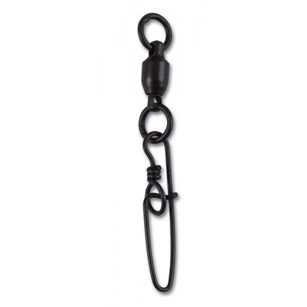 Pevnostní obratlík s kuličkovým ložiskem a dvojitě zajištěnou karabinou pro rychlou výměnu nástrahy, který je vyroben z kvalitního materiálu.
