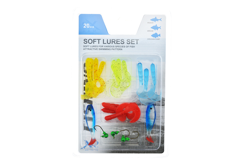 Sada 20 ks měkkých rybářskách návnad. Obsah balení 3 x jig heads 2 x soft fish lures 15 x tail lures číst celé