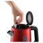 Elegantní rychlovarná konvice s retro designovými prvky je vyrobena z vysoce kvalitní ušlechtilé oceli s matným povrchem.