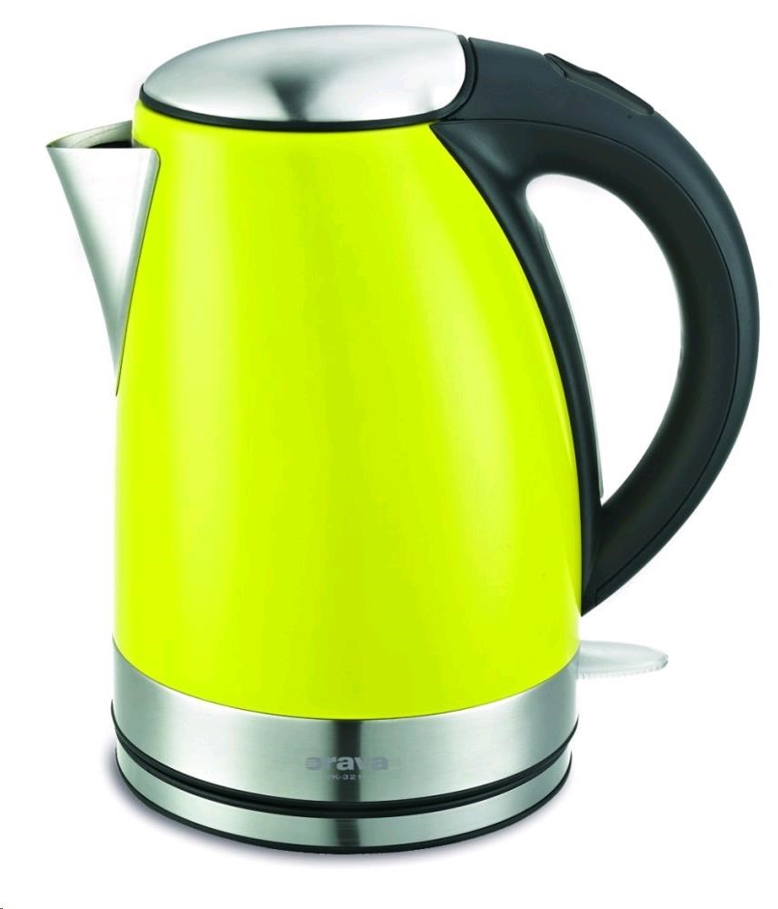 Rychlovarná konvice Orava VK-3217Y ve žluté barvě . Konvice je nerezová s objemem 1,7 litru.