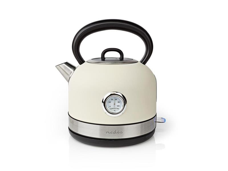 Stylová a výkonná Nedis rychlovarná konvice funguje stejně skvěle jako vypadá. Má velkorysý objem 1,7 l. A díky vysokému výkonu 2 150 W bude čaj připravený co nevidět. Klasický design a analogový teploměr propůjčuje této konvici retro vzhled a nádech. Díky matnému povrchu slouží jako elegantní doplněk každé kuchyně. Bezdrátová základna otočná o 360° usnadňuje zvedání. Skryté topné těleso minimalizuje usazování vodního kamene a v kombinaci s vyjímatelným filtrem zajišťuje velmi snadné čištění konvice a následně také stabilně skvělou chuť teplých nápojů.