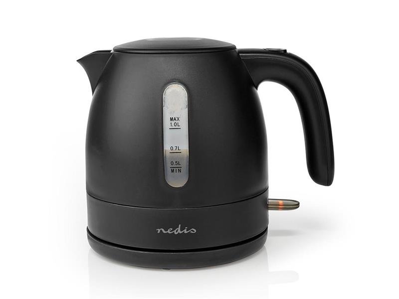 Tato stylová Nedis rychlovarná konvice má kapacitu 1 l a je kompaktní, ale také překvapivě rychlá. Díky skvělému výkonu 2 150 W bude čaj připravený co nevidět. Odolný, matně černý kryt se navíc skvěle vyjímá na každé kuchyňské lince. Bezdrátová základna otočná o 360°usnadňuje zvedání. Skryté topné těleso minimalizuje usazování vodního kamene a v kombinaci s vyjímatelným filtrem zajišťuje velmi snadné čištění konvice a následně také stabilně skvělou chuť teplých nápojů.