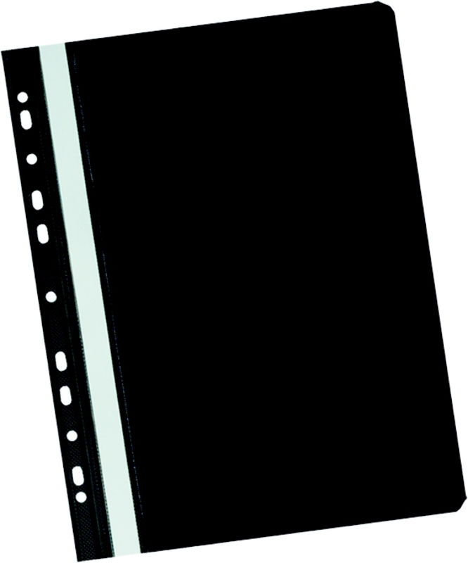 Tento černý rychlovazač je vybaven průhlednou přední stranou, která umožňuje snadno vidět obsah bez nutnosti otvírání. Díky euroděrování jej snadno připnete do pořadače a ušetříte tak čas při organizaci vaší dokumentace. Plastový materiál zajišťuje odolnost a dlouhou životnost i při častém používání.
