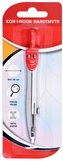 Cyrkiel szkolny, przeznaczony do kreślenia okręgów o średnicy do 340 mm. Wyposażony jest w grafit o średnicy 2 mm. Cyrkiel wykonany jest ze stopu cynku z wykończeniem imitującym nikiel. Plastikowy uchwyt cyrkla dostępny jest w kolorze czarnym, czerwonym, granatowym i pomarańczowym.