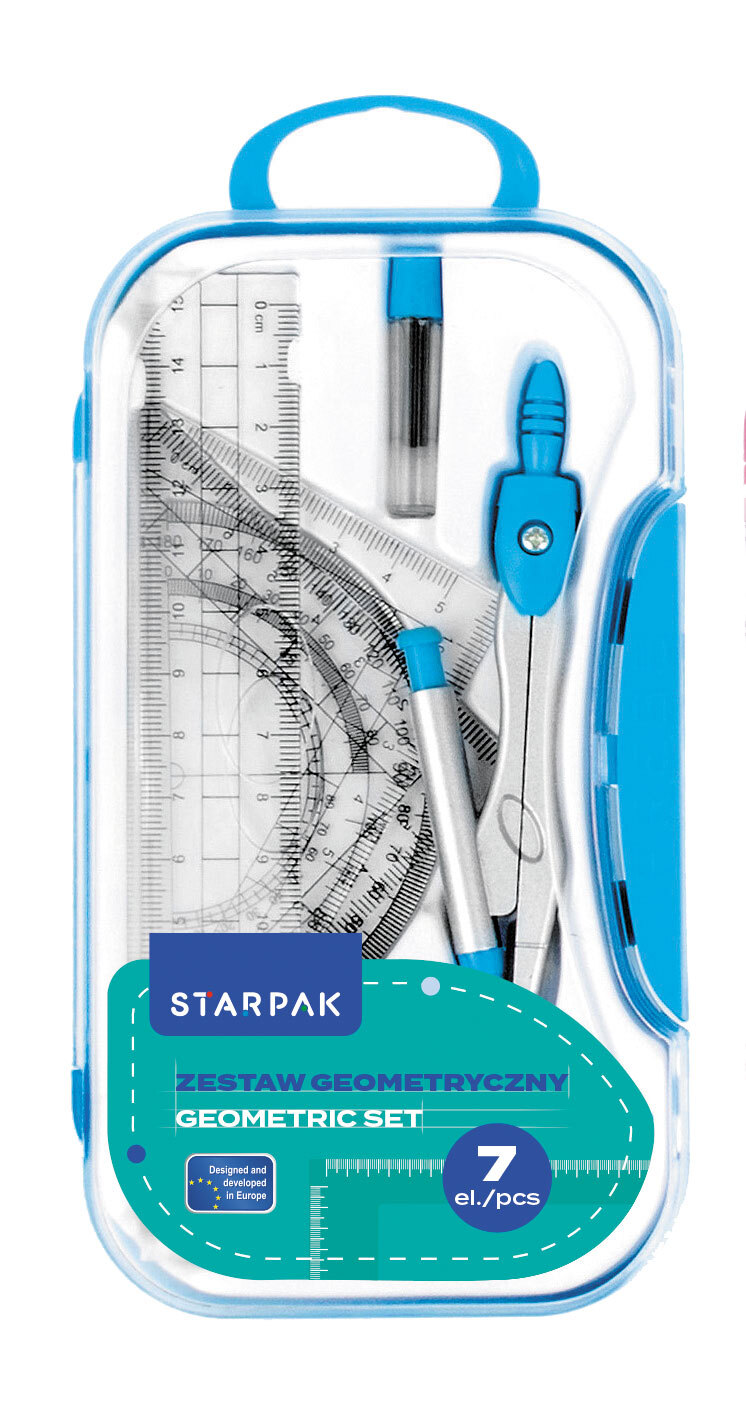 Zestaw szkolny geometryczny 7el. niebieski STARPAK 560248