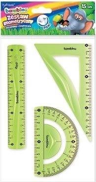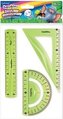 W skład zestawu wchodzą: linijka, ekierka, kątomierz.