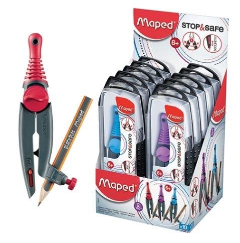 Cyrkiel STOP&SAFE z zaawansowanym systemem bezpieczenstwa uzytkowania. Igla chowa sie automatycznie po zamknieciu ramion. Ergonomiczny, gumowany uchwyt zapobiega wyslizgiwaniu z reki. Mozliwe blokowanie ramion cyrkla w okreslonej pozycji. W zestawie olówek drewniany. Miks trzech kolorów:...