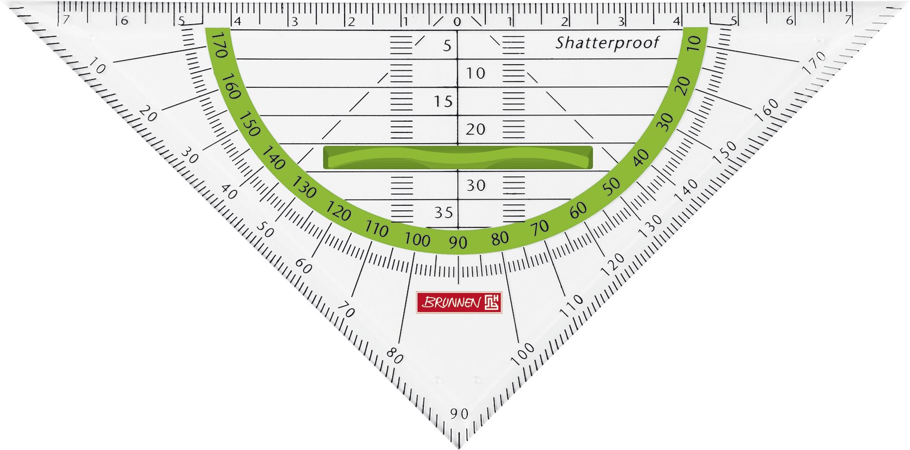 S ergonomickou rukojetí, se zkosením pro přesné vedení linie, odolné proti zlomení. Barevná protiběžná stupnice stupňů. Délka přepony 16 cm.