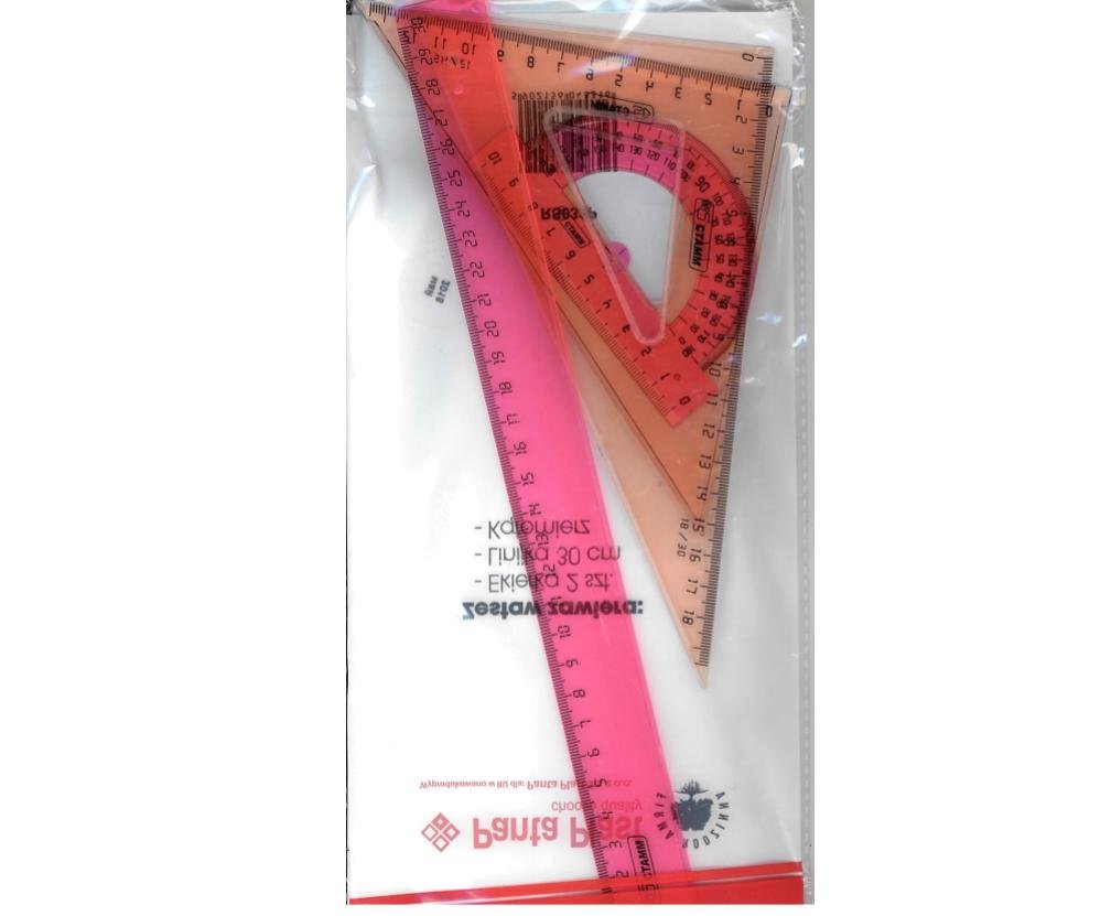 Zestaw geometyczny duży. W zestawie ekierka, 2 sztuki linijek po 30cm, kątomierz. číst celé