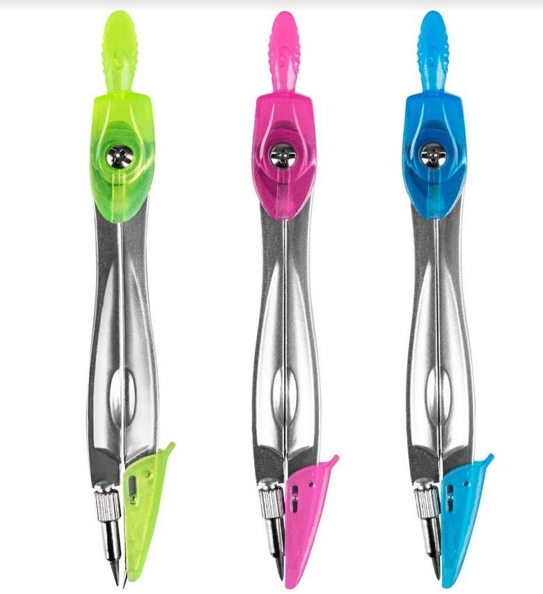 Cyrkiel jest niezbędnym wyposażeniem szkolnego piórnika, model z wymiennym wkładami gwarantuje cienką, precyzyjną linię.