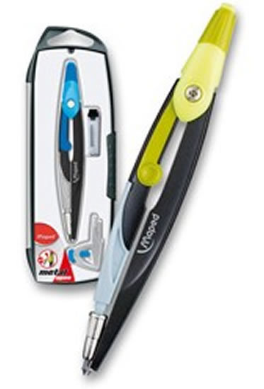 Multifunkční kovové kružítko s univerzálním držákem a náhradní tuhou. Ergonomický měkký úchop, zásobník na náhradní tuhu integrovaný v rameni.