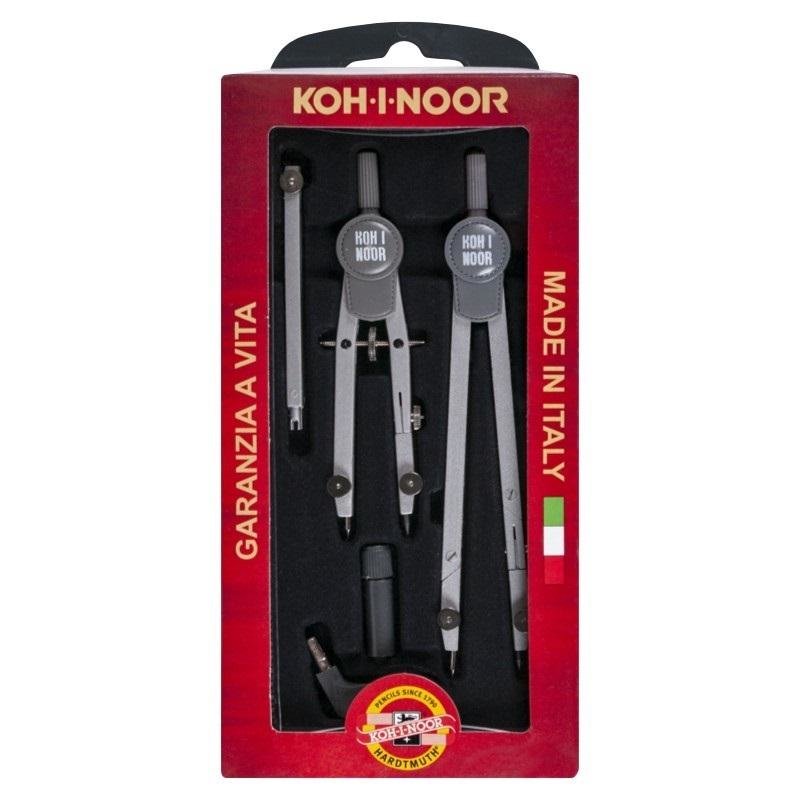 Zestaw cyrkli do użytku szkolnego oraz profesjonalnego. Doskonały do kreślenia precyzyjnych okręgów i łuków o różnej wielkości dzięki płynnej i stabilnej regulacji. Cyrkiel z długimi ramionami umożliwia kreślenie okręgów o bardzo dużej średnicy dzięki dodatkowej przedłużce. Zawiera: cyrkiel z długimi ramionami, cyrkiel z krótkimi ramionami i regulacją, przedłużkę, uchwyt do ołówka oraz zapasowy rysik i ostrze do cyrkla. Wykonany z metalu oraz dobrej jakości tworzywa. Całość spakowana jest w plastikowe pudełko, które jest niezwykle wygodne do przechowywania oraz transportu.