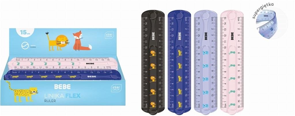 Linijka o długości 15 cm wykonana z supergiętkiego, odpornego na złamania i uszkodzenia materiału. Podziałka z dwóch stron ułatwia korzystanie.