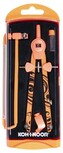 Zestaw dla dzieci w wieku szkolnym w trzech kolorach: pomarańczowym, zielonym oraz niebieskim. Doskonały do kreślenia precyzyjnych okręgów i łuków dzięki płynnej i stabilnej regulacji. Umożliwia rysowanie bardzo dużych okręgów dzięki dostępnej w zestawie przedłużce. Wykonany z metalu oraz dobrej jakości tworzywa. Zawiera: cyrkiel z wymiennym uchwytem na ołówek, przedłużkę oraz zapasowe rysiki i ostrze do cyrkla. Całość spakowana jest w ładne plastikowe pudełko, które jest niezwykle wygodne do przechowywania oraz transportu.