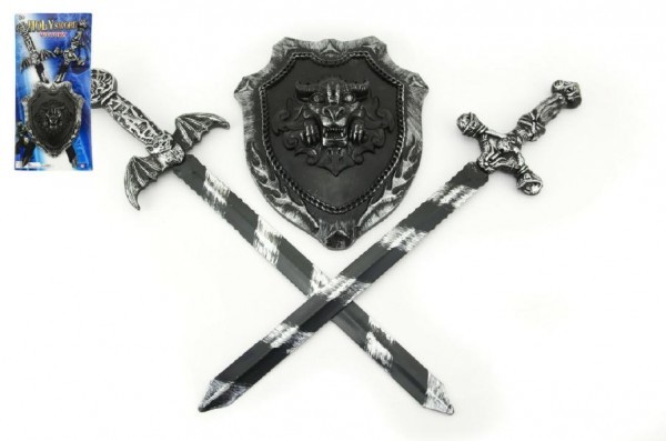 Rytířská sada 2 meče a štít plast 56cm na kartě