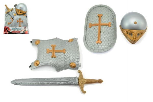 Rytířská sada meč štíty přilba plast 40x53cm na kartě