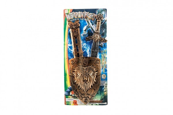 Meč se štítem a pouzdrem plast 55cm na kartě 25x57cm