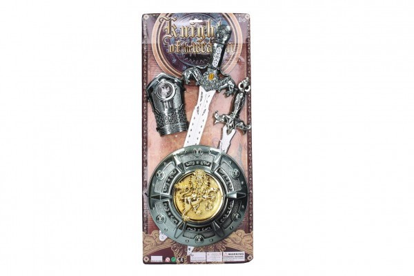 Rytířská sada plast meč 50cm dýka štít chránič na ruku 4ks na kartě