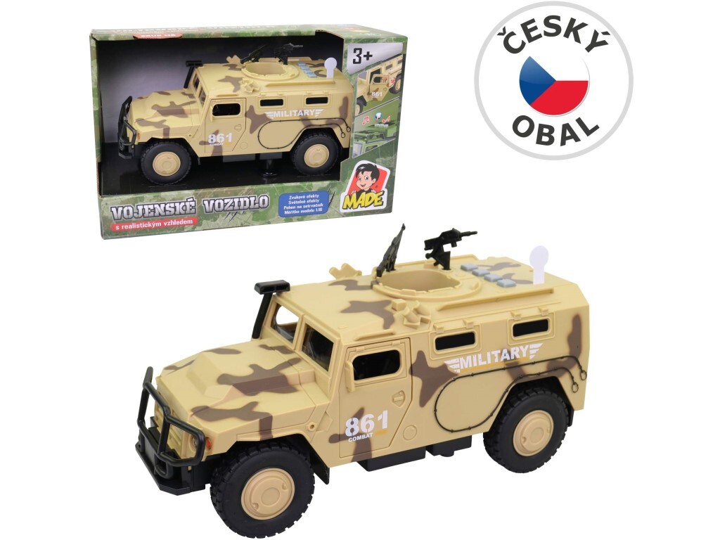 Vojenské auto, na baterie, světlo a zvuk, setrvačník