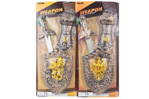 Plastový meč se štítem a chráničem. Délka meče cca 50 cm. Rozměry balení cca 29 x 64 x 6 cm. Věk 3+