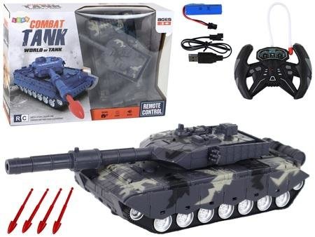 Zabawka to zdalnie sterowany czołg RC, który jest dokładną repliką prawdziwego czołgu. Ma kolorystykę w dominujących kolorach moro, szarym, czarnym i beżowym, co nadaje mu realistyczny wygląd. číst celé