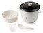 Snadno ovladatelný plně automatický rýžovar vám vždy dokonale uvaří rýži bez připalování a to i díky vnitřní nádobě s nepřilnavým povrchem. Do rýžovaru lze umístit i parní koš a vařit další potraviny zároveň s rýží v unikající páře. Po dovaření rýžovar udržuje rýži dále teplou dokud není vypnut.