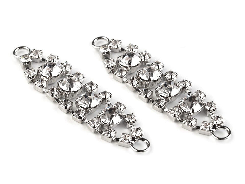 Štrasová ozdoba 12x50 mm - 2 ks - 1 stříbrná