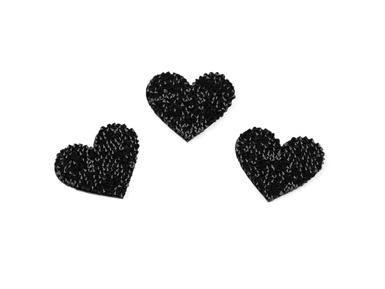 Nažehlovací srdce s kamínky - 10 ks - 2 černá