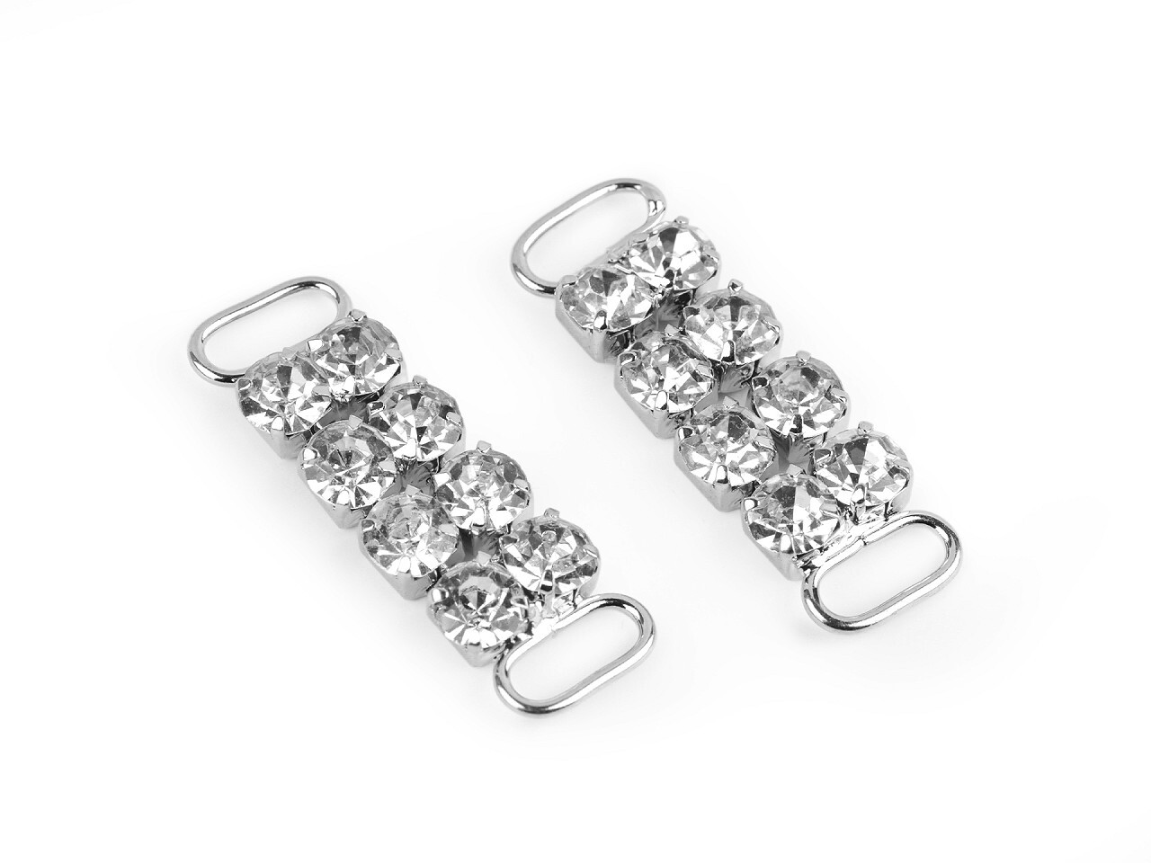 Štrasová ozdoba je elegantní a jemný doplněk, který dodá vašemu oděvu či módním doplňkům špetku luxusu. Je osázená broušenými kamínky, které se nádherně třpytí. Je ohebná, díky dvěma očkům po stranách ji můžete našít na oděvy a doplňky (rukavice, klobouky, látkové čelenky do vlasů apod.). Vynikne také na obuvi. Dá se navléci na ramínka a tkaničky.