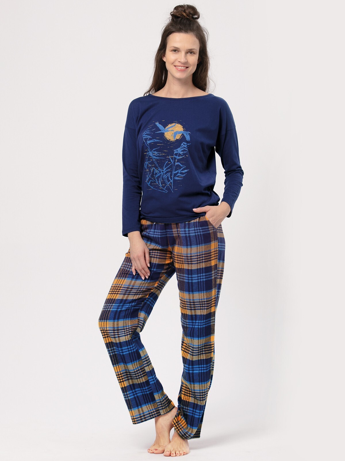 Piżama Key LNS 937 B24 Flanela dł/r S-XL damska granatowy M