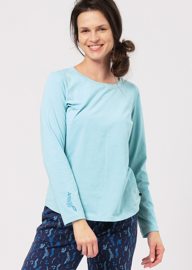 Piżama damska- koszulka jednolita z długim rękawem- półokrągły dekolt- rękaw ozdobiony delikatnym nadrukiem- spodnie długie z ozdobnym printem- dwie kieszenie- w pasie wygodna gumka, obszyta bawełną číst celé