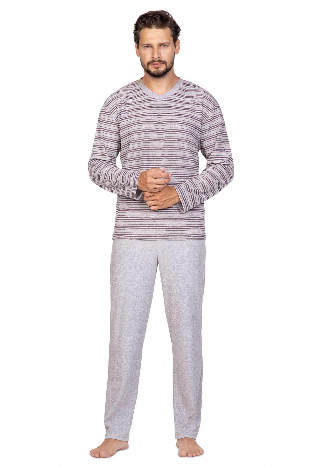Piżama męska frotte- bluza z długim rękawem- dekolt w szpic- do kompletu długie, gładkie spodnie