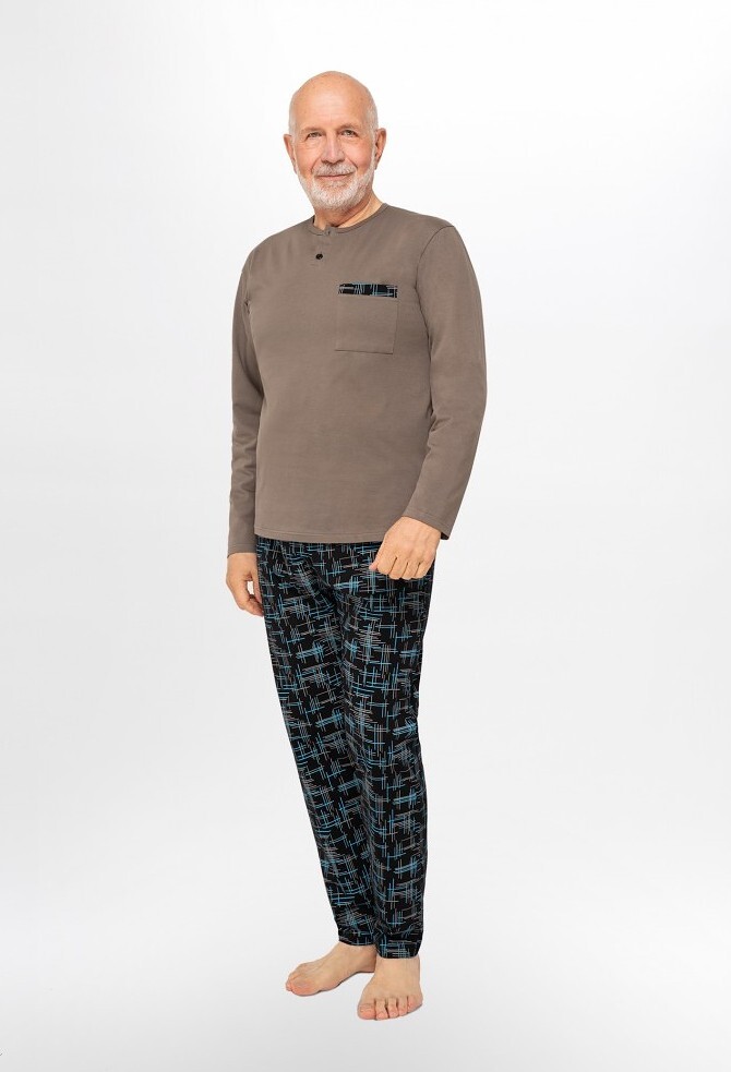 Piżama męska- koszulka z długim rękawem- dekolt zapinany na guziki- naszyta mała kieszonka- spodnie z długą nogawką, wzorzyste- z kieszeniami číst celé