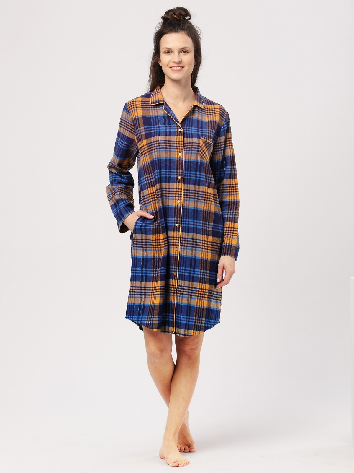 Koszula damska- wykonana z wysokiej jakości flaneli- wzór w kratkę ozdobiona połyskującą nitką- zapinana na guziki- z kołnierzykiem- długi rękaw- w linii talii wygodne kieszenie- długość przed kolano číst celé