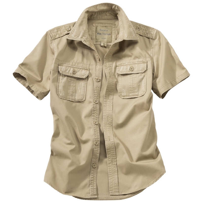 Letní bavlněná košile s krátkým rukávem pro pohodlné nošení od německé firmy Surplus. Je ušita velice volněy, masivní výšivka zdůrazňuje švy, kapsy a doplňky.Košile má na hrudi dvě kapsy zakryté klopami na knoflíky. Dolní okraje kapes a klopy mají výrazně zkosené rohy. Zdvojené, kontrastní prošívání zvýrazňuje veškeré švy. Knoflíky na zapínání a na klopách kapes jsou v barvě košile. Obšitý spodní okraj je tvarovaný - vepředu a vzadu prodloužený, v ...