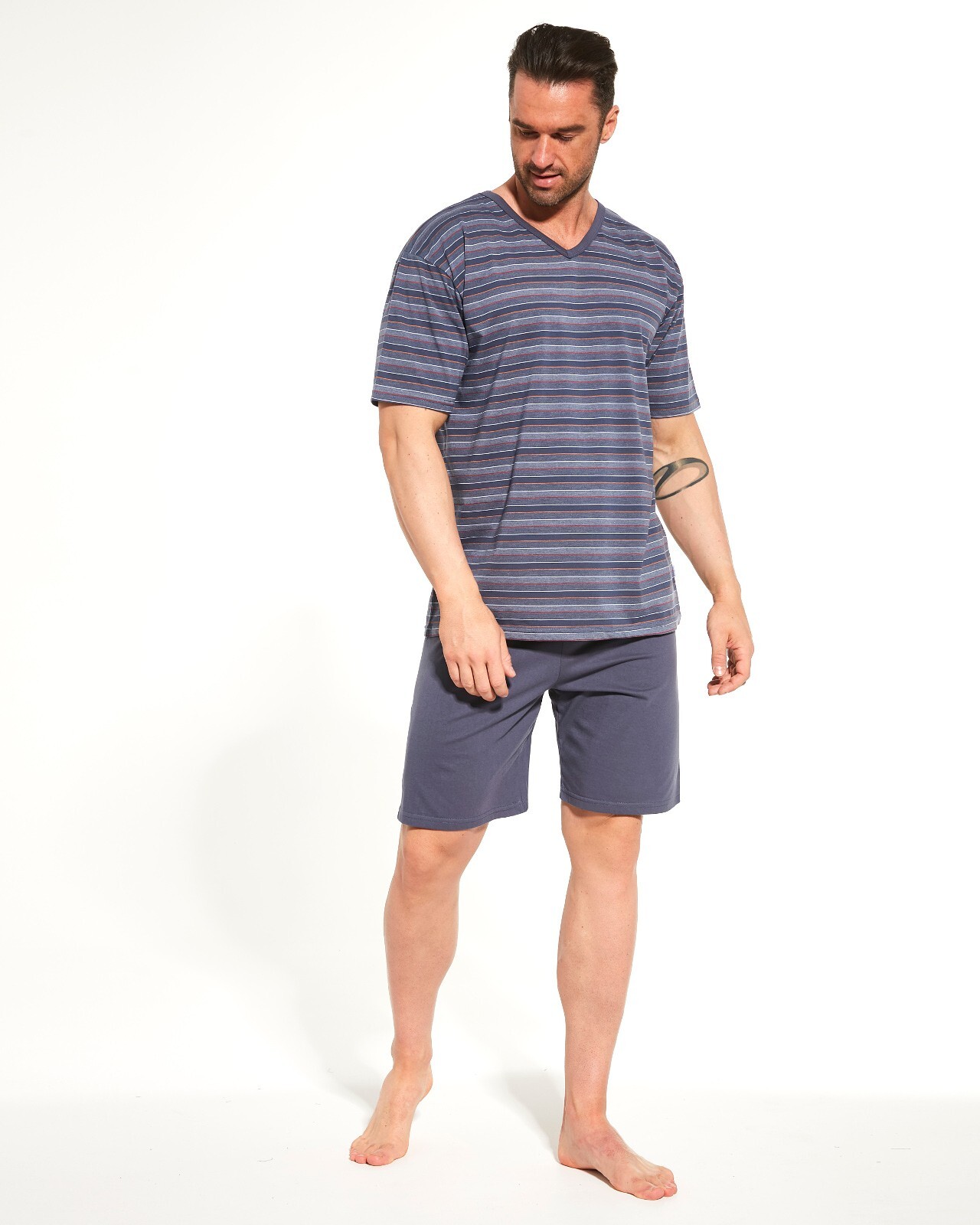 Piżama męska- wysoka jakość bawełny- koszulka z krótkim rękawem- dekolt w kształcie litery V- gładkie szorty