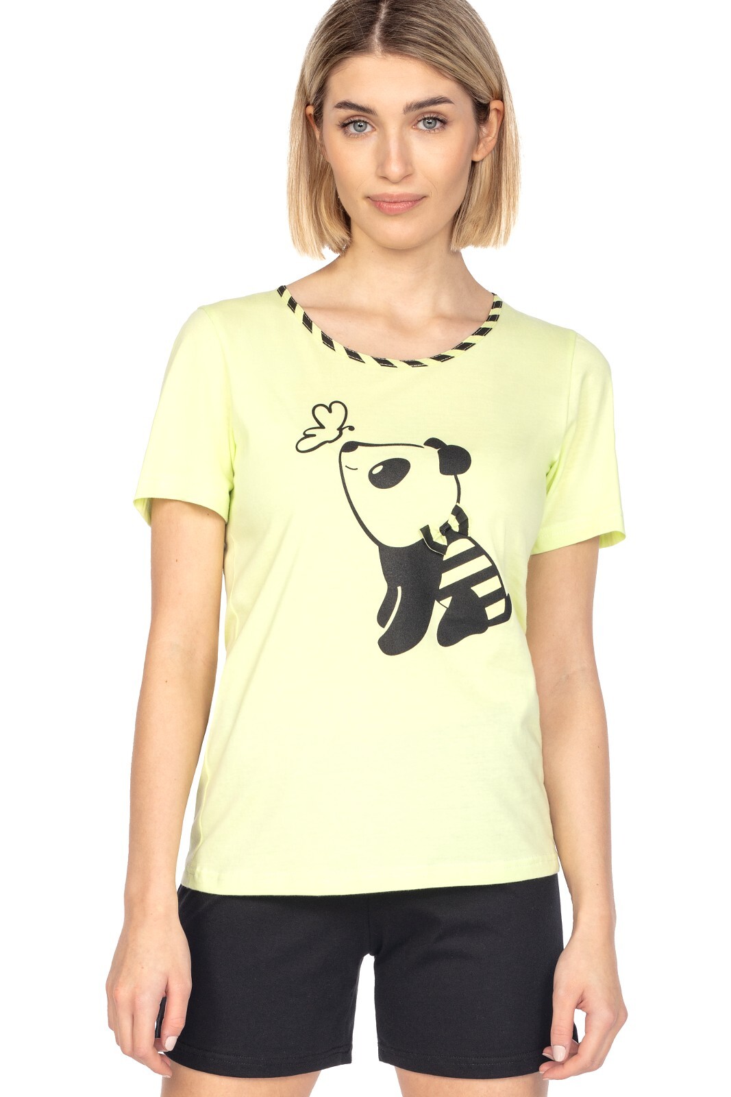 Bawełniana piżama damska- koszulka z krótkim rękawem- przód ozdobiony nadrukiem- dekolt okrągły- spodenki krótkie, jednolite číst celé