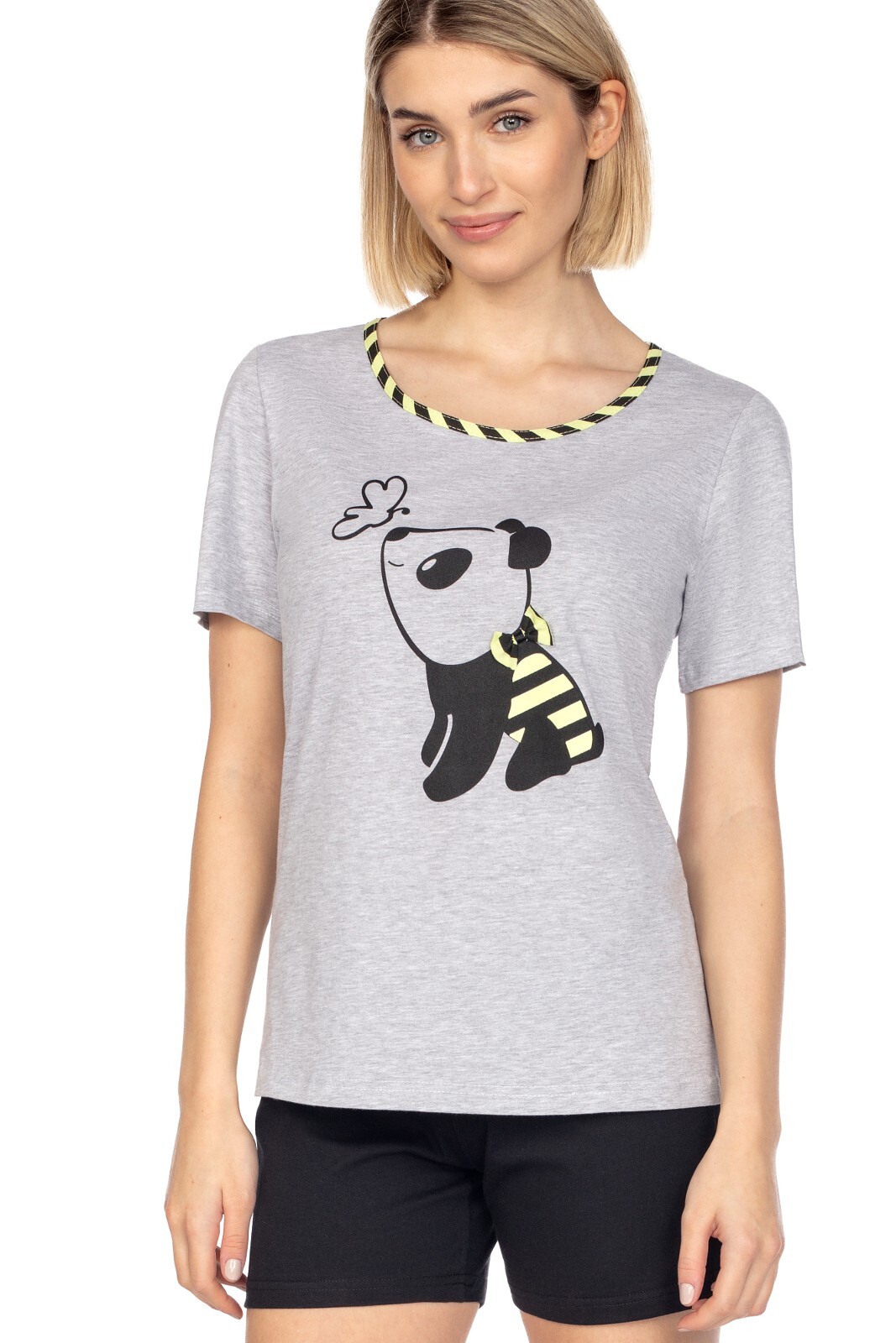Bawełniana piżama damska- koszulka z krótkim rękawem- przód ozdobiony nadrukiem- dekolt okrągły- spodenki krótkie, jednolite číst celé